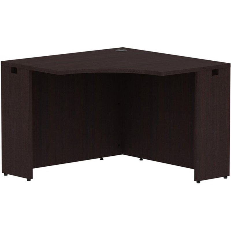 Corner desk is part of Lorell Essentials Series Laminate Furniture with high-quality laminate construction and metal-to-metal, cam-lock connections. Espresso laminate top is 1" thick for durability. Use the grommet hole in the top for easy cord routing. D